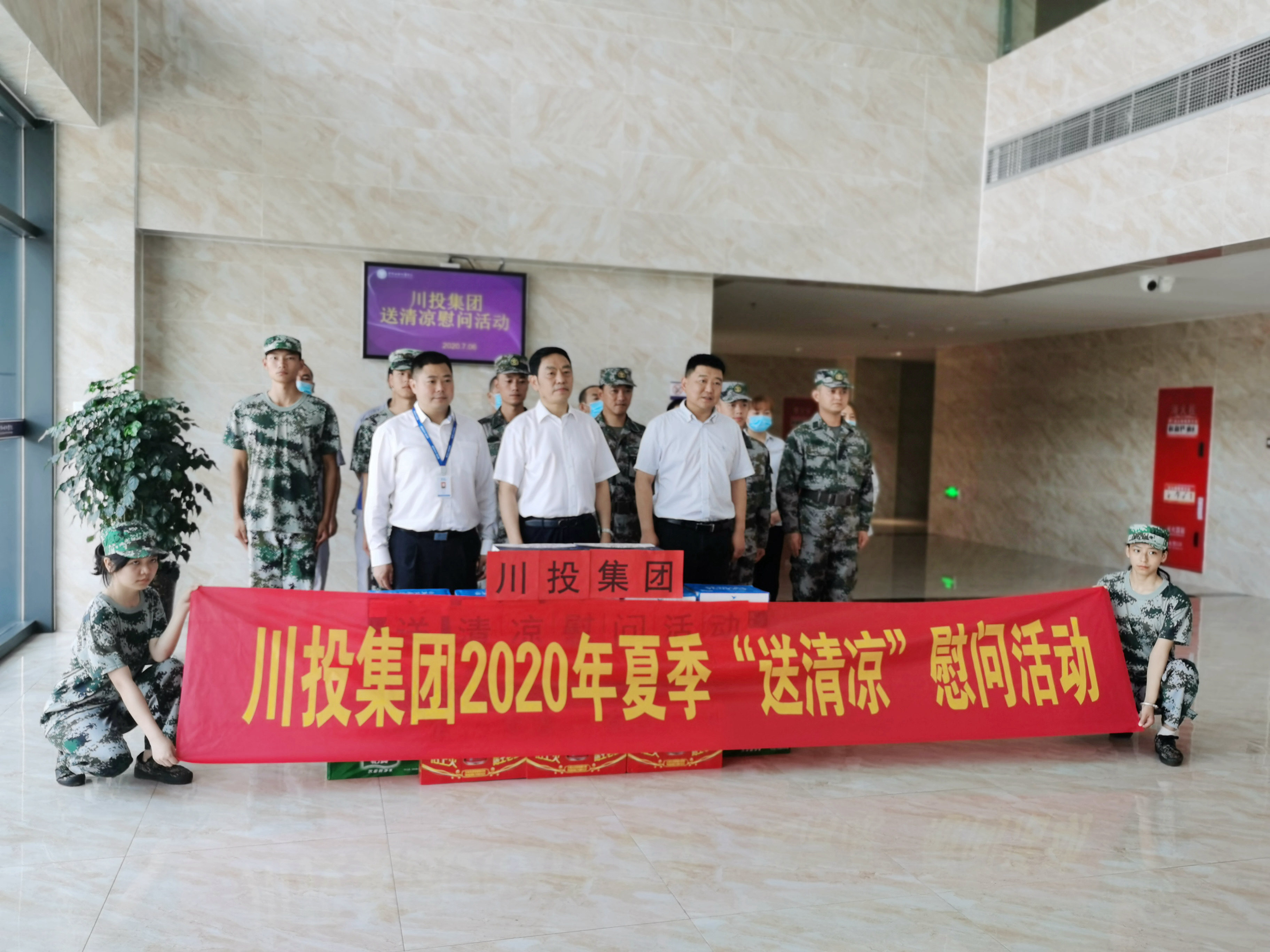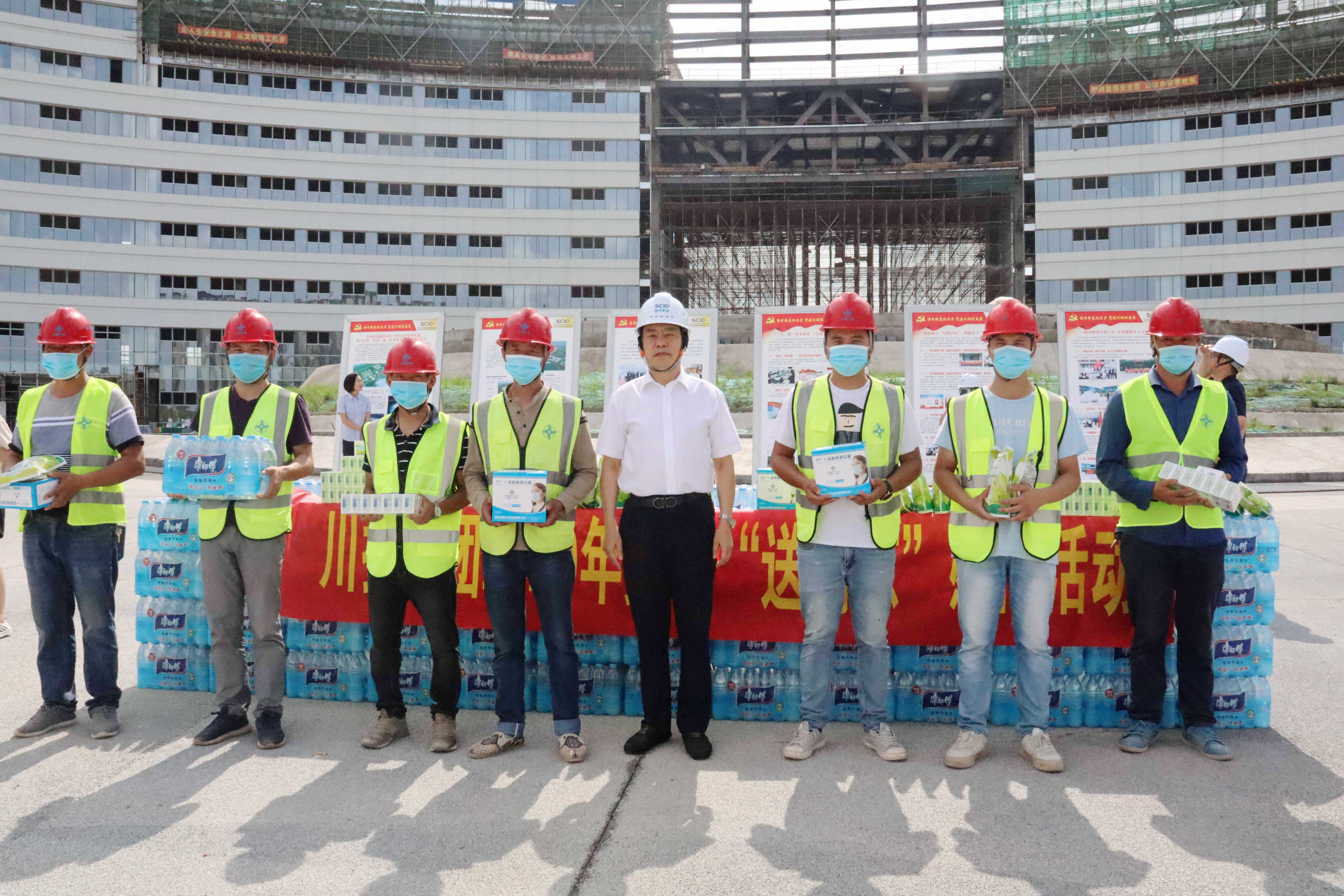 在中國牙谷科創(chuàng)園施工現(xiàn)場和資陽口腔職業(yè)學(xué)院,鄧凱副書記代表集團(tuán)公司對在高溫下堅(jiān)守一線的施工人員、教職員工和軍訓(xùn)新生代表表示了親切的關(guān)懷和慰問,將消暑物資送到大家手中。