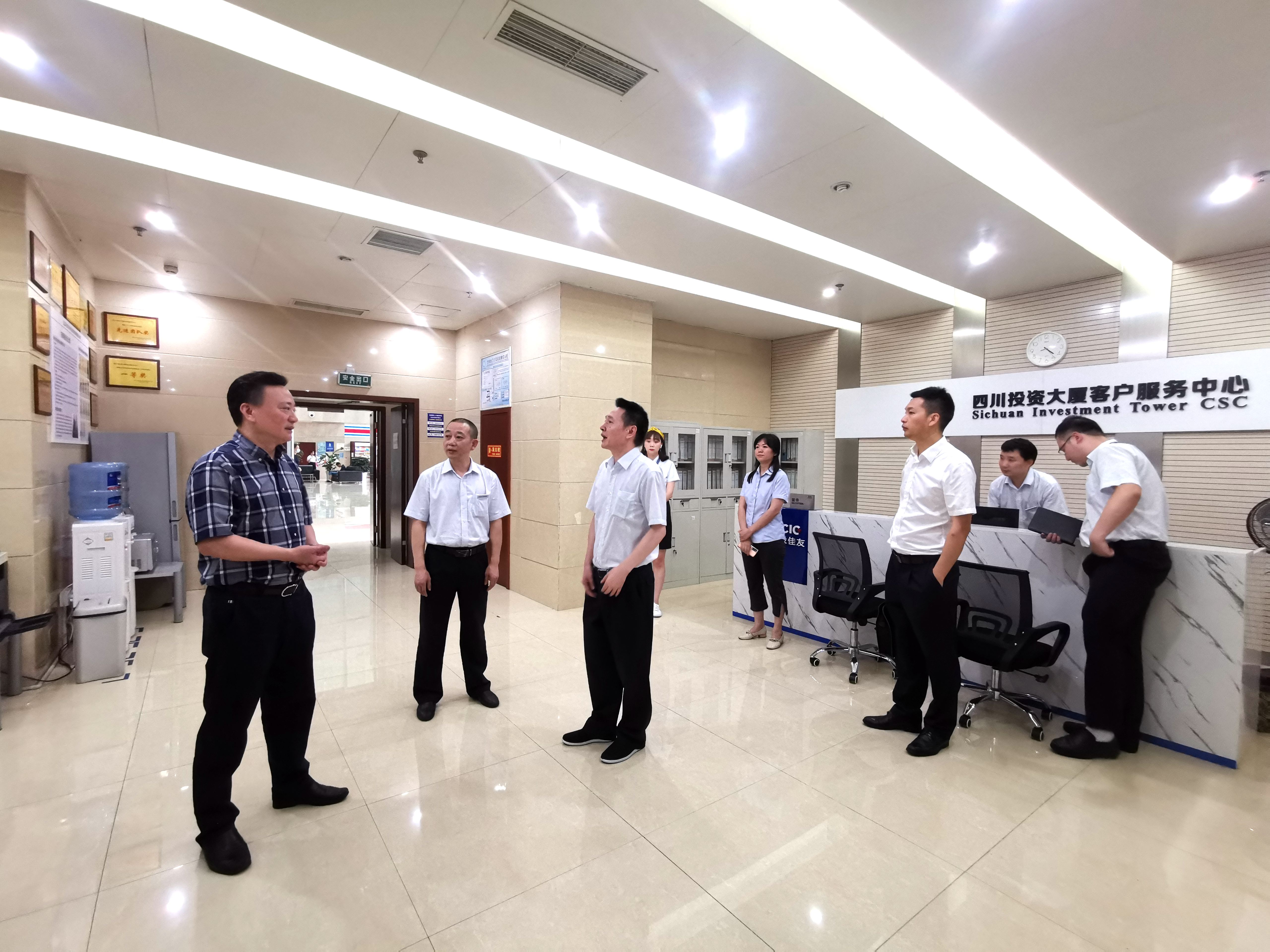 7月14日,省紀委監(jiān)委駐川投集團紀檢監(jiān)察組組長,川投集團黨委委員、紀委書記李明舟一行赴四川投資大廈物業(yè)服務中心檢查指導工作。
