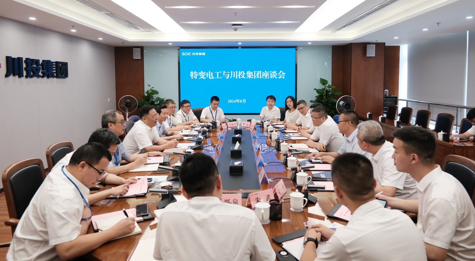 8月30日,特變電工股份公司黨委委員、總裁黃漢杰帶隊(duì)到訪川投集團(tuán),雙方圍繞深化務(wù)實(shí)合作和增強(qiáng)產(chǎn)業(yè)互補(bǔ)開(kāi)展工作座談。集團(tuán)公司黨委副書記、副董事長(zhǎng)、總經(jīng)理李文志主持會(huì)議,副總經(jīng)理張昊參加。