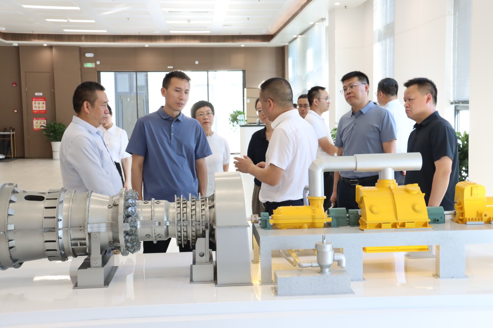 在一樓展示廳,張能坤一行詳細(xì)了解了資陽燃?xì)怆娬卷?xiàng)目基本概況、燃?xì)獍l(fā)電產(chǎn)業(yè)優(yōu)勢、H級燃機(jī)機(jī)組特性等方面情況;在智慧管控中心,張能坤一行實(shí)地查看機(jī)組運(yùn)行情況,聽取了資陽氣電在迎峰度夏電力保供方面的工作情況匯報。