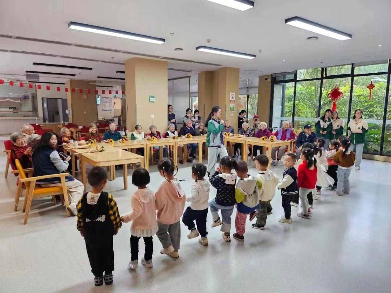 川投舒適之家·頤康養(yǎng)老中心聯(lián)合楷石中錦城森林幼兒園師生開(kāi)展“共繪夕陽(yáng)紅,溫暖滿人間”活動(dòng)。孩子們手捧鮮花,用最純真的聲音向機(jī)構(gòu)在住長(zhǎng)者們送上重陽(yáng)節(jié)祝福,并帶來(lái)了豐富多彩的節(jié)目表演和別開(kāi)生面的重陽(yáng)節(jié)主題手工課。一句句飽含深情的話語(yǔ),一束束鮮花,一個(gè)個(gè)笑容,一段段舞蹈、朗誦、情景劇等文藝表演,一件件精美的折紙、賀卡、手繪作品,長(zhǎng)者們掌聲與歡笑不斷。