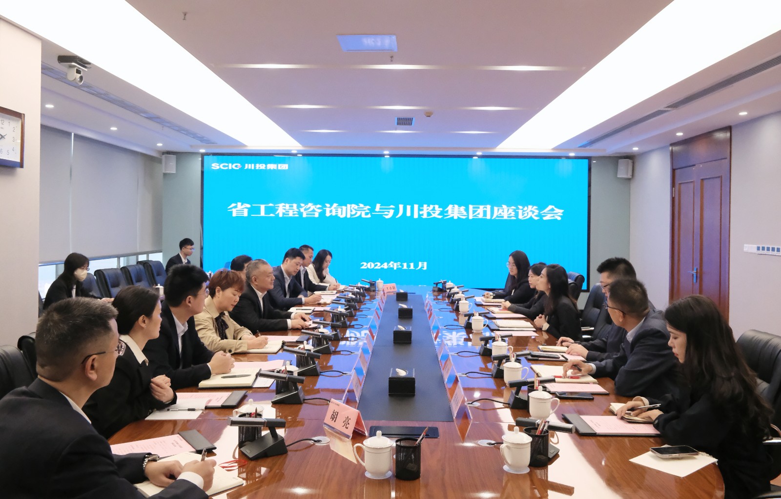 省工程咨詢(xún)?cè)狐h委委員、副院長(zhǎng)嚴(yán)牮,黨委委員、總經(jīng)濟(jì)師汪琴,省工程咨詢(xún)?cè)壕C合業(yè)務(wù)與信息處、辦公室相關(guān)負(fù)責(zé)同志;川投集團(tuán)辦公室、資金財(cái)務(wù)部、黨委組織部、人力資源部相關(guān)負(fù)責(zé)同志參加座談。