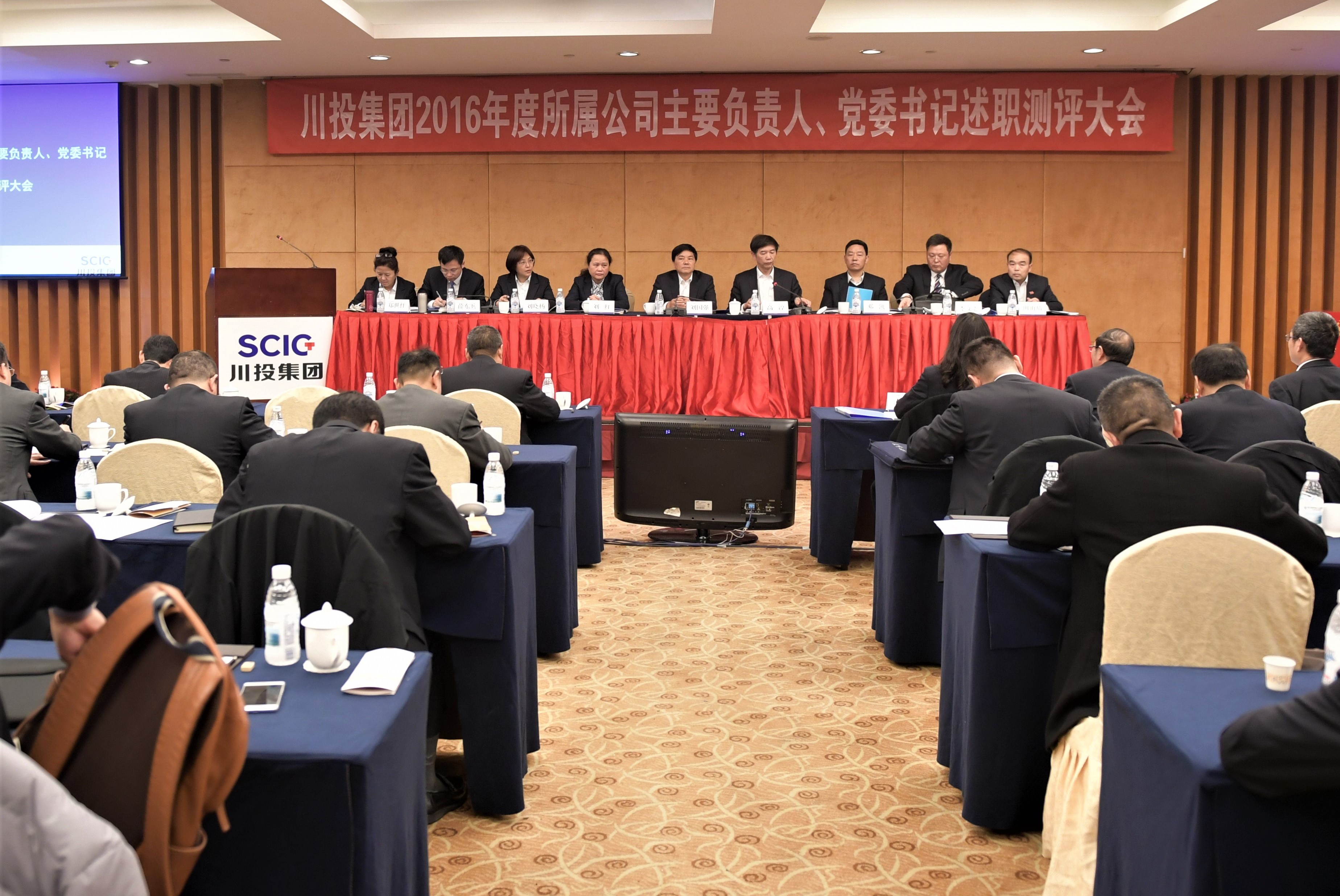 根據集團公司年度考核工作安排,2017年2月16日下午,集團公司所屬企業(yè)主要負責人、黨委書記述職測評大會在川投國際酒店召開,集團所屬17家公司主要負責人、黨委書記公開述職。會議由集團公司副董事長、黨委副書記、總經理主持,四川省國有企業(yè)監(jiān)事會第三室主席劉紅及專職監(jiān)事羅賢明、茍新蓉到會指導,集團公司班子成員、本部中層副職以上管理人員、集團所屬企業(yè)主要負責人、黨委書記、黨建部門負責人等近80人參加了會議。