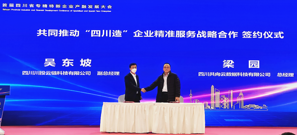 會上,四川川投云鏈科技有限公司“撮合拍供應鏈金融智慧服務平臺”,與四川共向云數(shù)據(jù)科技有限公司“四川省數(shù)字貿(mào)易平臺”,就雙方平臺強強聯(lián)合共同推動“四川造”企業(yè)精準服務進行戰(zhàn)略合作簽約。
