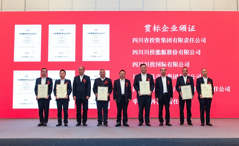 四川省投資集團有限責任公司(以下簡稱“川投集團”)作為四川省首批合規(guī)管理試點企業(yè),以“1+4+N”模式開展合規(guī)管理探索試點,建立了合規(guī)管理組織推進體系、制度體系、運行體系和保障體系。在合規(guī)管理GB/T35770-2022國家標準及IS037301:2021國際標準公布施行后,川投集團以“1+5+N”模式開展對標建設,集團本部及四川川投能源股份有限公司、川投國際有限公司、川投信息產業(yè)集團有限公司、四川川投大健康產業(yè)集團有限責任公司、華西牙科有限責任公司5戶所屬企業(yè)均獲得合規(guī)管理雙體系權威認證。會上,與會領導向這5家企業(yè)頒發(fā)了合規(guī)管理認證證書。