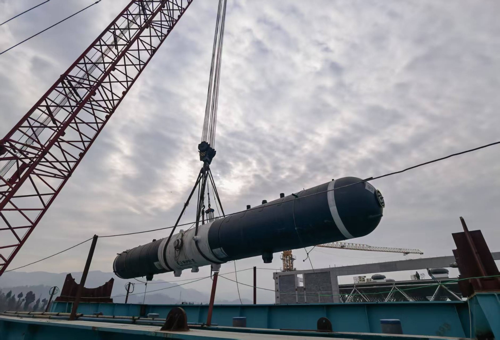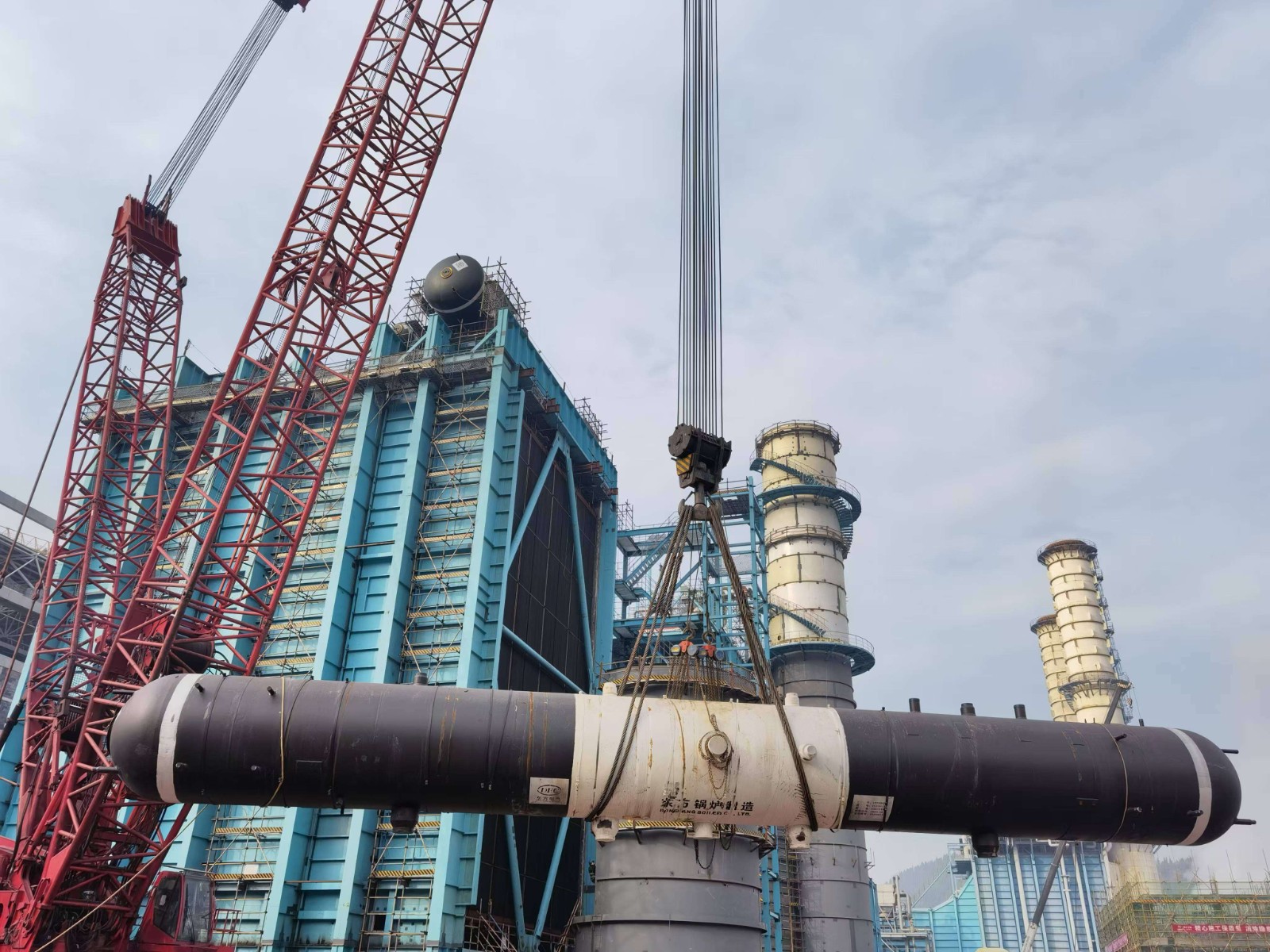 1月13日10時10分,達州氣電二期工程施工現(xiàn)場迎來關鍵節(jié)點。在指揮人員的清晰指令下,一臺重達138噸的4號余熱鍋爐高壓汽包,被大型吊車穩(wěn)穩(wěn)吊起,緩緩攀升至高空,并精準安裝至預定位置。至此,4號爐模塊、汽包等大件設備全部順利吊裝就位,為后續(xù)管道安裝工作奠定堅實基礎,有力推動了項目整體建設進程。