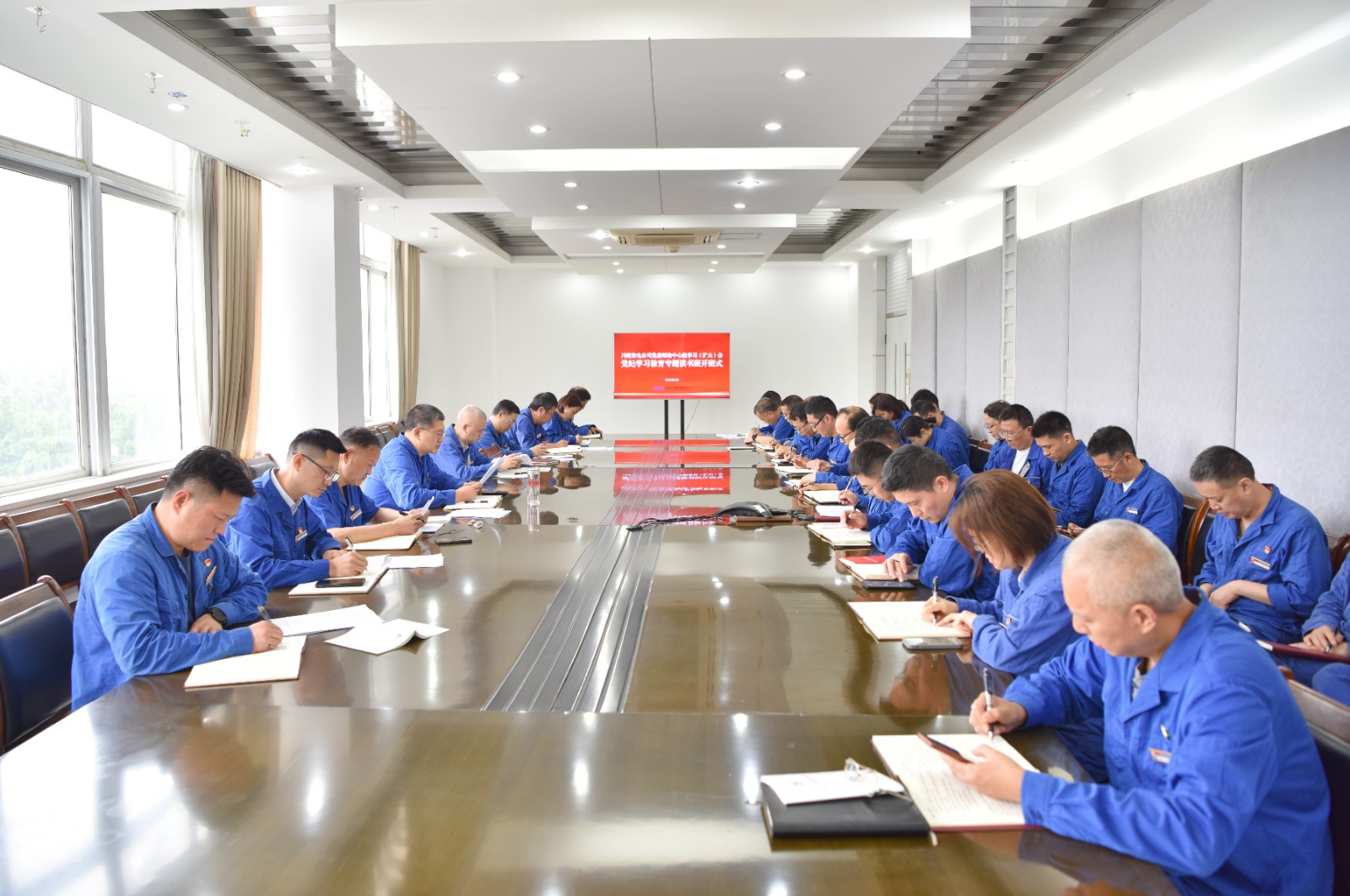 4月24日,川南發(fā)電公司黨委在行政辦公樓三樓會議室召開2024年第4次黨委理論學習中心組擴大會暨黨紀學習教育專題讀書班開班式。公司黨委書記、董事長劉勝金主持會議并就開展黨紀學習教育及專題讀書班學習進行了安排部署。公司領導班子成員、中層管理人員參加會議。