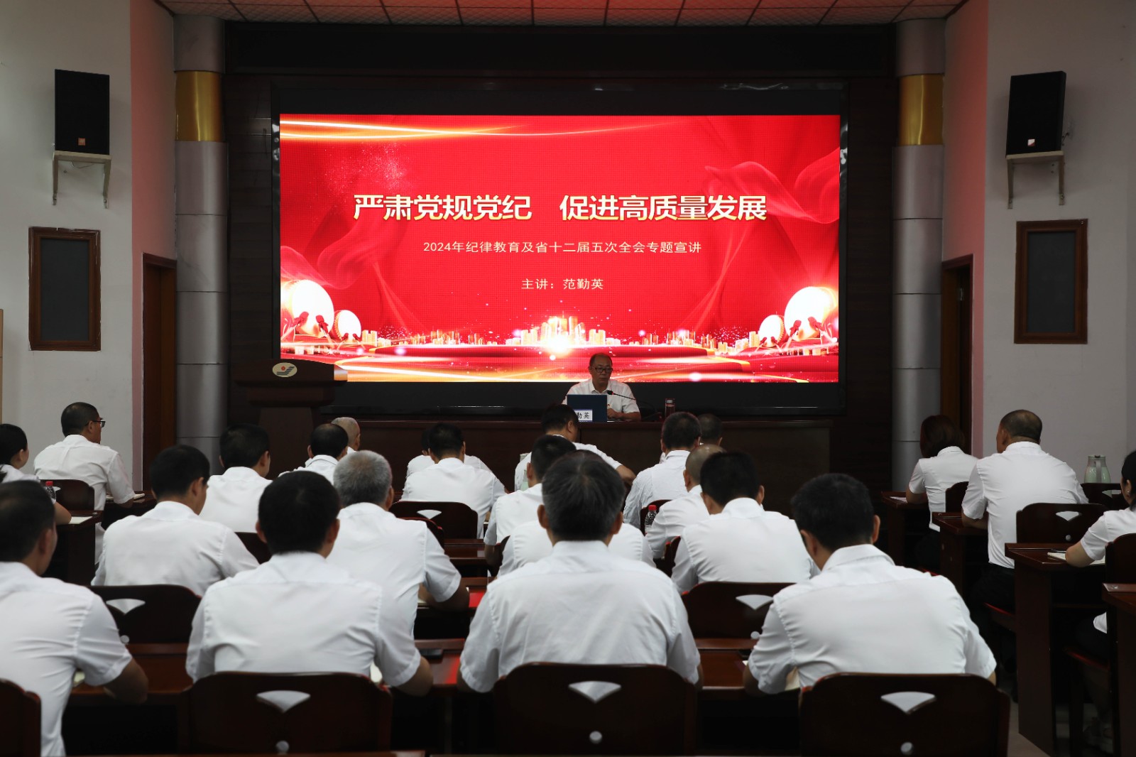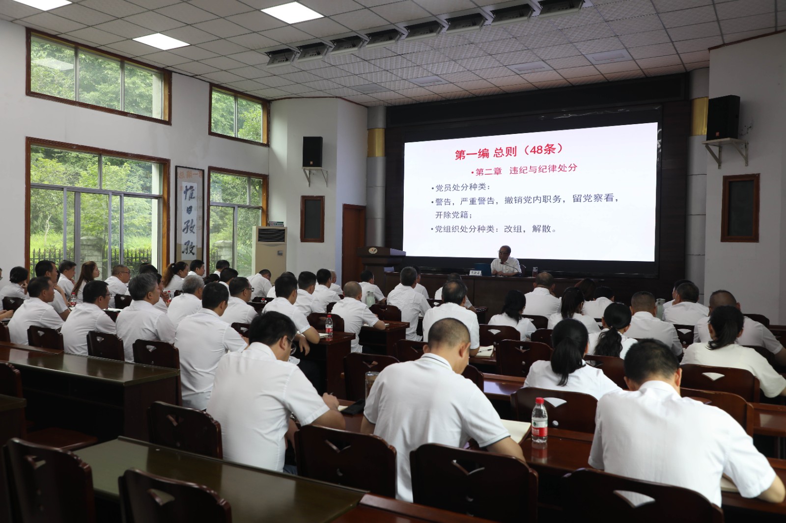 7月4日,嘉陽集團黨委副書記、總經(jīng)理范勤英作《嚴肅黨規(guī)黨紀,促進高質(zhì)量發(fā)展》專題黨課宣講,機關(guān)第三黨支部、川投峨旅黨總支及所聯(lián)系隊站黨支部共60余人聆聽了宣講。